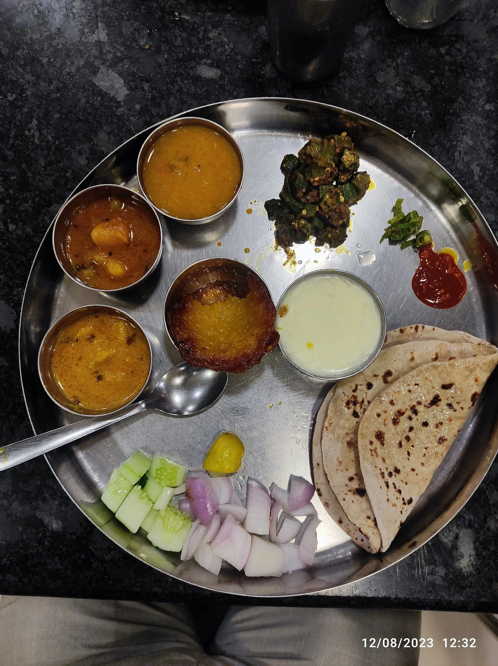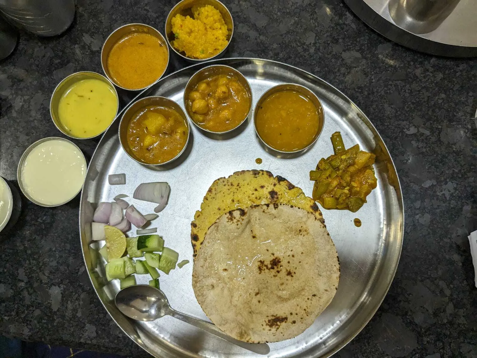 Restaurant is excellent for vegetarian. Thali is that where it is unlimited except some dish food is very good. You can find taste of Rajasthan with Dal baati chokha. I go with my family enjoy it too much. My suggestion you should go there and check whether my port is good for you or not. There is time for us to chat and lunch in between 11 to 230 and dinner is available between 6 to 830 I think before going to restaurant check that it is open or not
